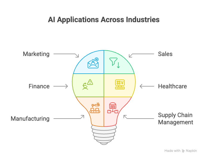 - Sales: AI can be used to identify promising leads, forecast sales, and improve sales performance.