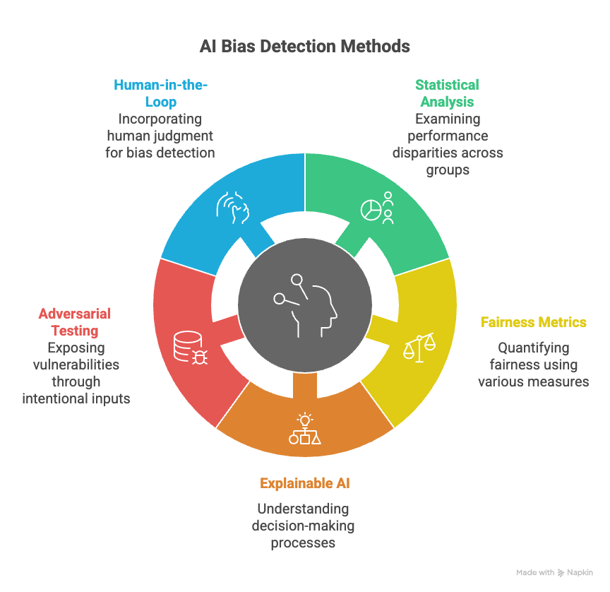 Detecting bias in AI systems is a critical step in ensuring fairness and accuracy. Several methods can be used to identify and quantify bias: